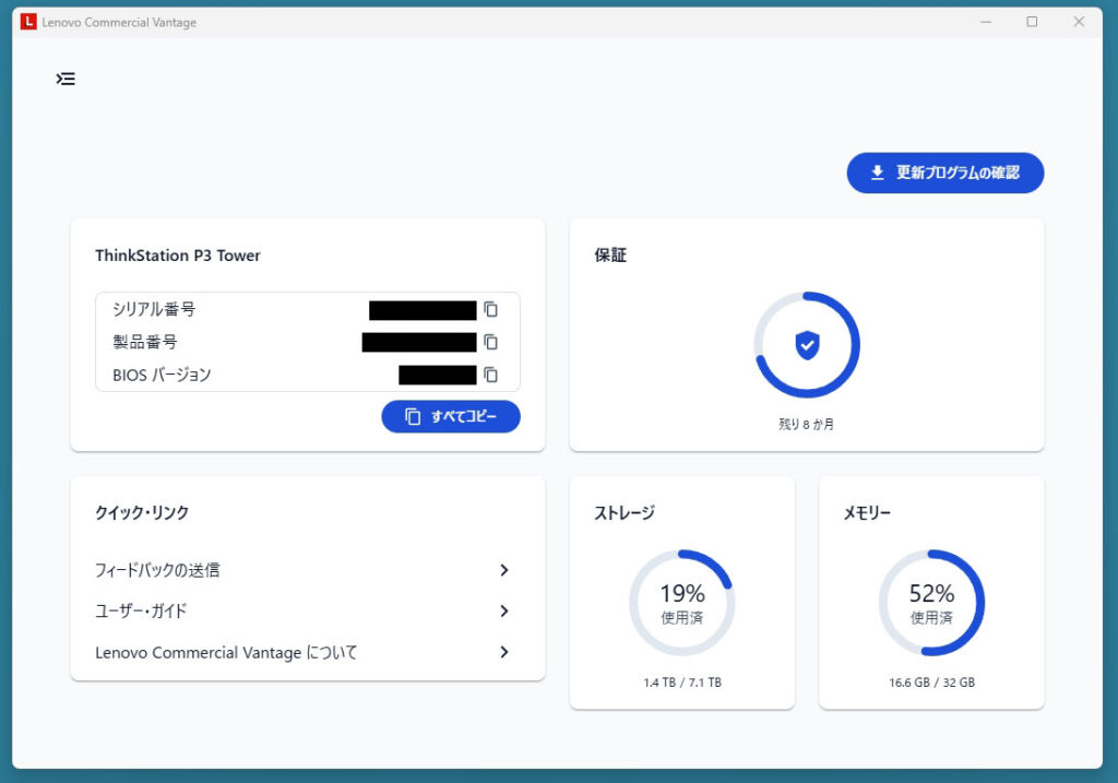 私が使用しているパソコン(Lenovo)には、Lenovo謹製の更新プログラム管理ツール「Commercial Vantage」がデフォルトでインストールされています。